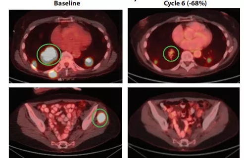 68岁的A女士2017年确诊为NTRK融合晚期甲状腺癌,接受全身化疗后,2019年2月开始160mgQD的剂量使用repotrectinib,第6周肿瘤缩小68%。