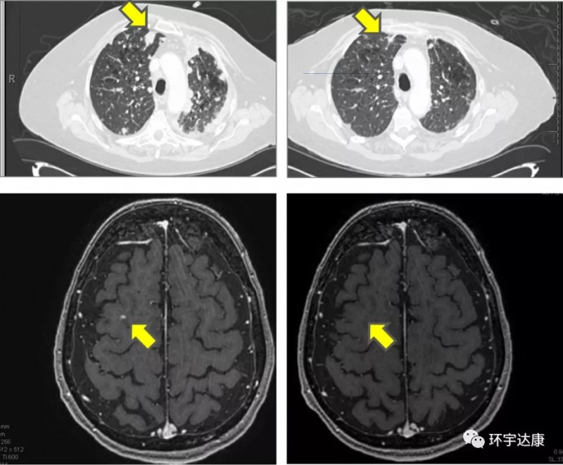 一位77岁的女性KRASG12C突变非小细胞肺癌患者,既往接受了多种方案的放化疗,PD-1治疗,仍然无法阻止病情进展,出现肝脏和脑部的多发转移,临床上已经没有更好的治疗方案,在接受试验性药物Adagrasib(MRTX849)治疗后7个周期后,肺部病灶缩小67%,脑部病灶消退了!目前仍在接受治疗。
