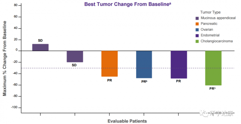 在可评估的其他实体瘤的六名患者中,其中1例子宫内膜癌,1例胰腺癌,1例卵巢癌和1例胆管癌达到部分缓解。2名阑尾癌患者病情稳定。所有六名患者仍在接受治疗。这意味着疾病控制率达到了100%!