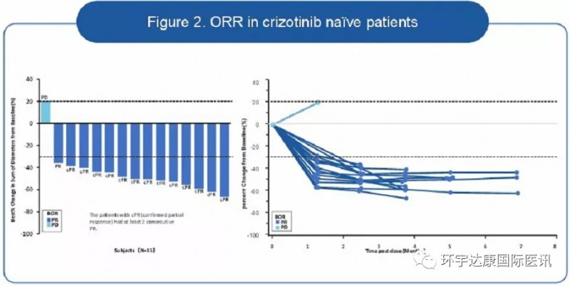 未经过克唑替尼治疗的患者中(n=15):客观缓解率(ORR)为93%(14/15),疾病控制率(DCR)为93%(14/15);