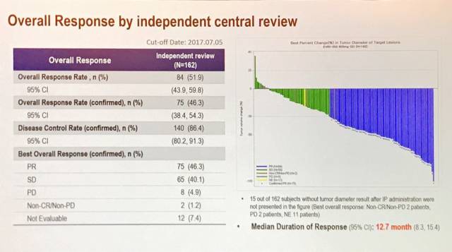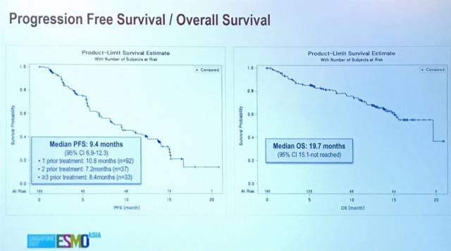 客观有效率46.3%,中位无进展生存期9.4月,中位总生存期19.7月。