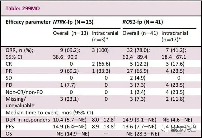 恩曲替尼的亚洲背景更深厚,曾经公开过专门针对亚洲患者的疗效分析结果。在NTRK阳性的患者中,基线存在脑转移的患者整体缓解率75.0%,其中颅内病灶缓解率100%,基线未发生脑转移的患者整体缓解率66.7%;取得了临床缓解的患者中位缓解持续10.4个月,所有患者中位无进展生存期14.9个月。