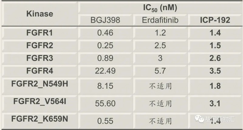 注:IC50是指FGFR激酶活性被抑制一半时抑制剂的浓度。