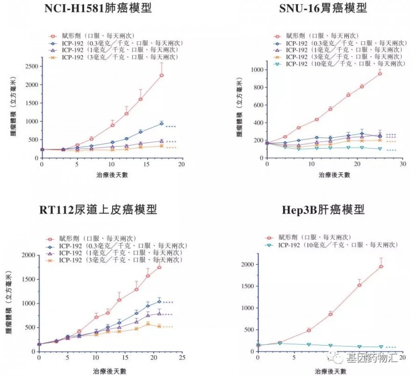 除了上述结构上的优化,Gunagratinib还具有良好的广谱抗癌潜力。在多类肿瘤模型中,Gunagratinib都展现出了抑制肿瘤生长的作用。