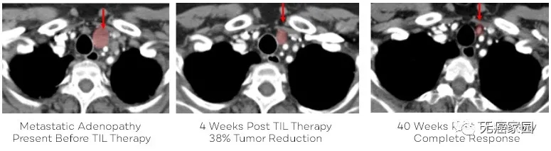 当从这些患者体内的肿瘤病灶中提取出抗癌能力超强的TILs细胞,并在体外扩增培养成数十亿有着精准杀伤能力的免疫大军,回输到体内作战时,大部分患者在首次TILs治疗后进行CT扫描就开始出现明显的肿瘤消退。