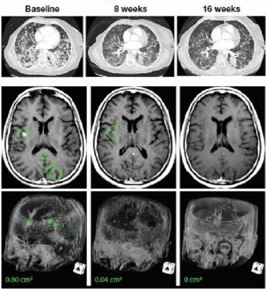 02、肺癌脑转移:一线治疗,脑部肿瘤几乎全部消失
