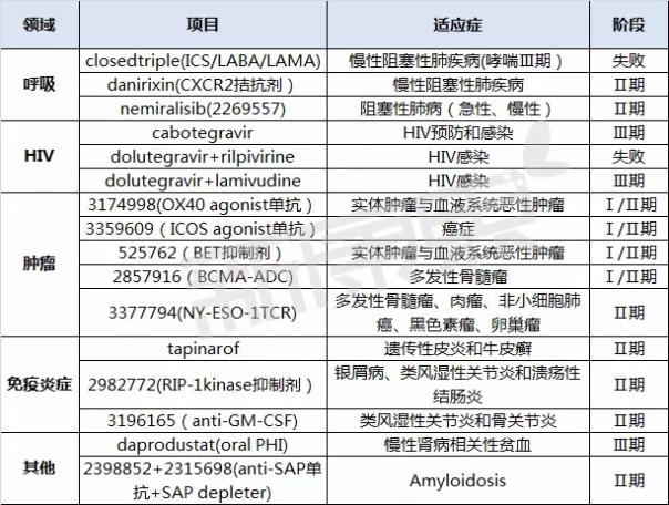 今年4月,新任CEOEmmaWalmsley上台,立即对制药业务进行业务重组。在2017年Q2财报中,宣布放弃30多个在研项目(包括13项已处于临床阶段的项目,20项处于临床前研究的项目),计划将80%的研发费用聚焦核心业务——呼吸疾病、HIV、肿瘤以及免疫炎症。