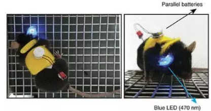 ▲LED光源照射小鼠肿瘤病灶(图片来源:《NatureCommunications》)