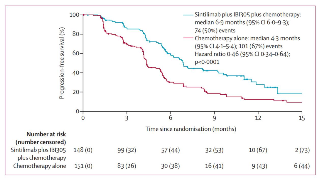 国内药物同样做过类似的研究——信迪利单抗+贝伐单抗+含铂双药化疗治疗靶向耐药的患者。