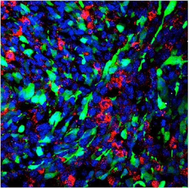 纳米药物治疗鼠脑胶质瘤:颅内注射的纳米颗粒吞噬,