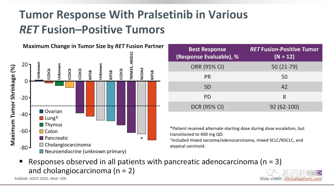这款药物也有治疗其它类型的RET突变阳性实体瘤的潜力,整体缓解率50%。