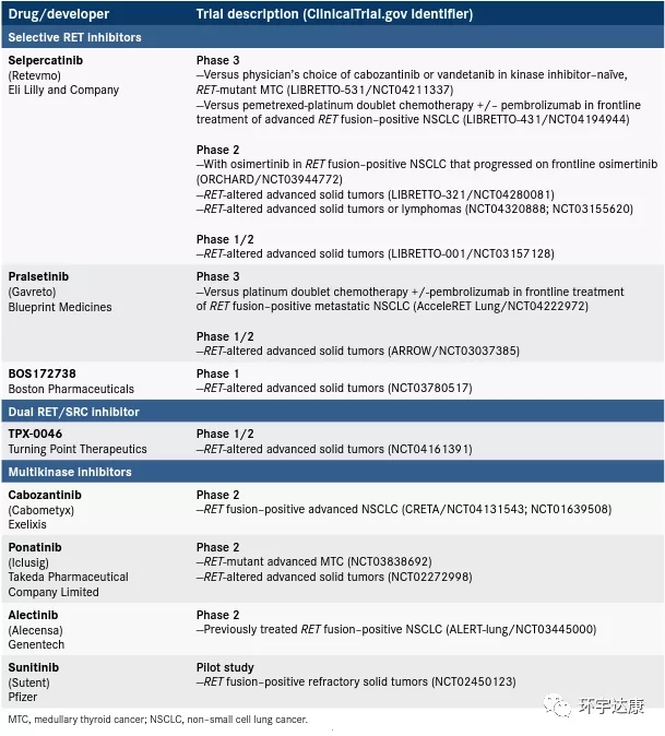 在2017年之前,针对RET突变只能通过多激酶抑制剂(例如vandetinib和cabozantinib)治疗,效果不佳。